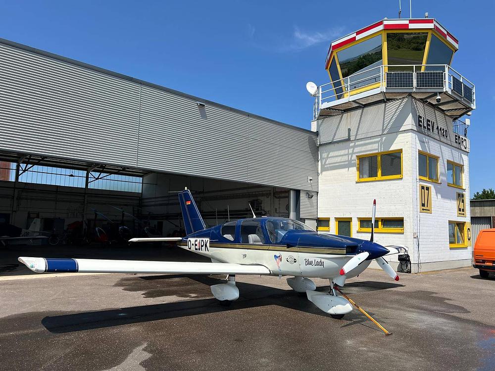 English: The French-made Socata TB10 with fixed landing gear combines flying pleasure with ample space for up to four people to travel. The 180 hp Lycoming O-360-A1 AD engine, paired with the quieter MTV-12B/180-17 variable-pitch propeller, delivers top performance in all flight phases with moderate fuel consumption (under 30 l/h when properly leaned).